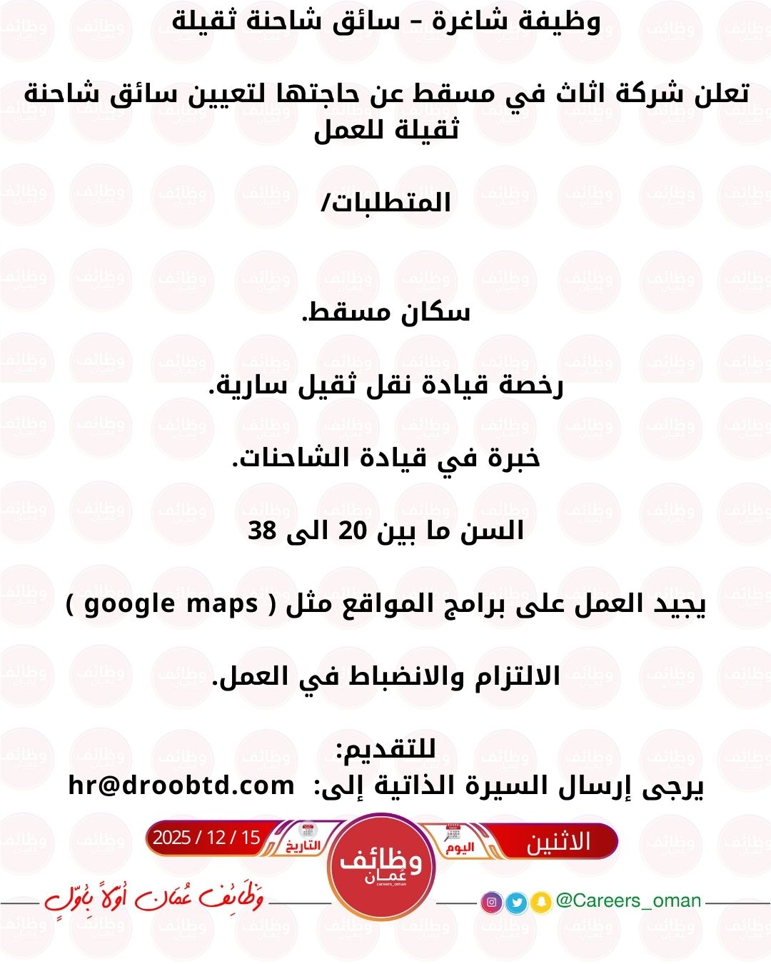 شركة أثاث في مسقط - وظيفة شاغرة ( سائق شاحنة ثقيلة )