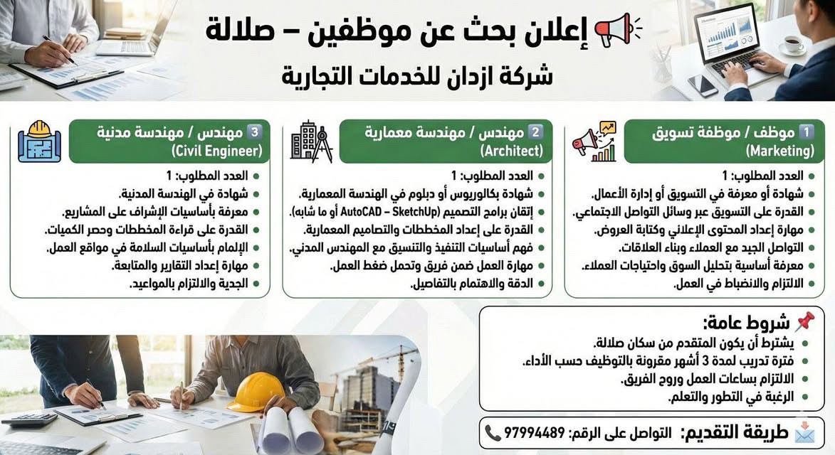 شركة ازدان للخدمات التجارية في صلالة - وظائف شاغرة