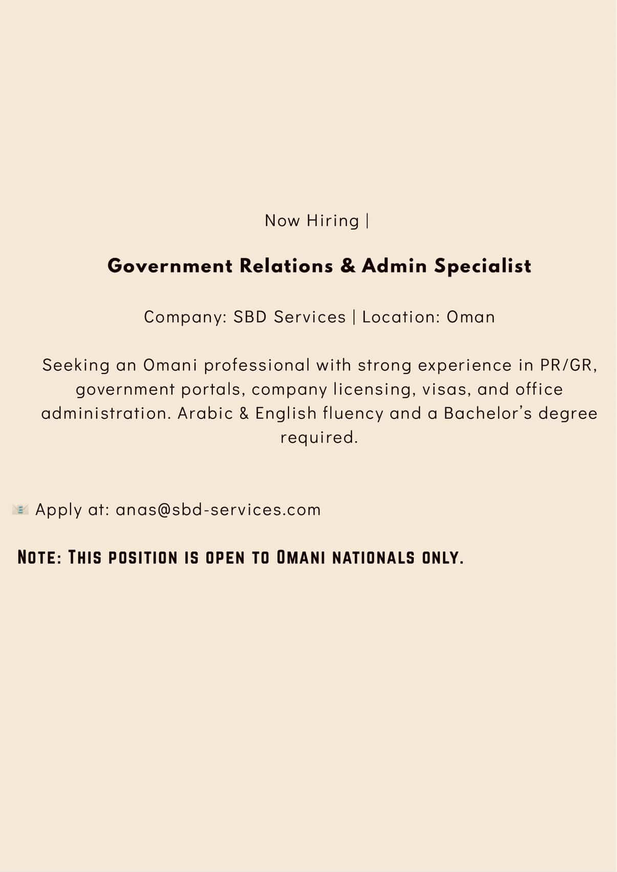 شركة SBD Services - وظيفة شاغرة ( Government Relations & Admin Specialist )