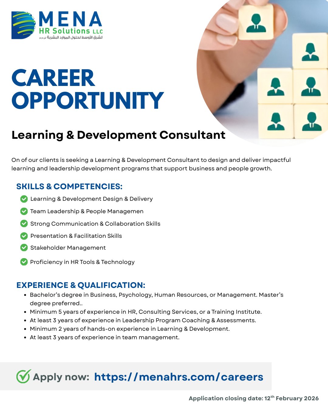 الشرق الأوسط لحلول الموارد البشرية - وظيفة شاغرة ( Learning & Development Consultant )