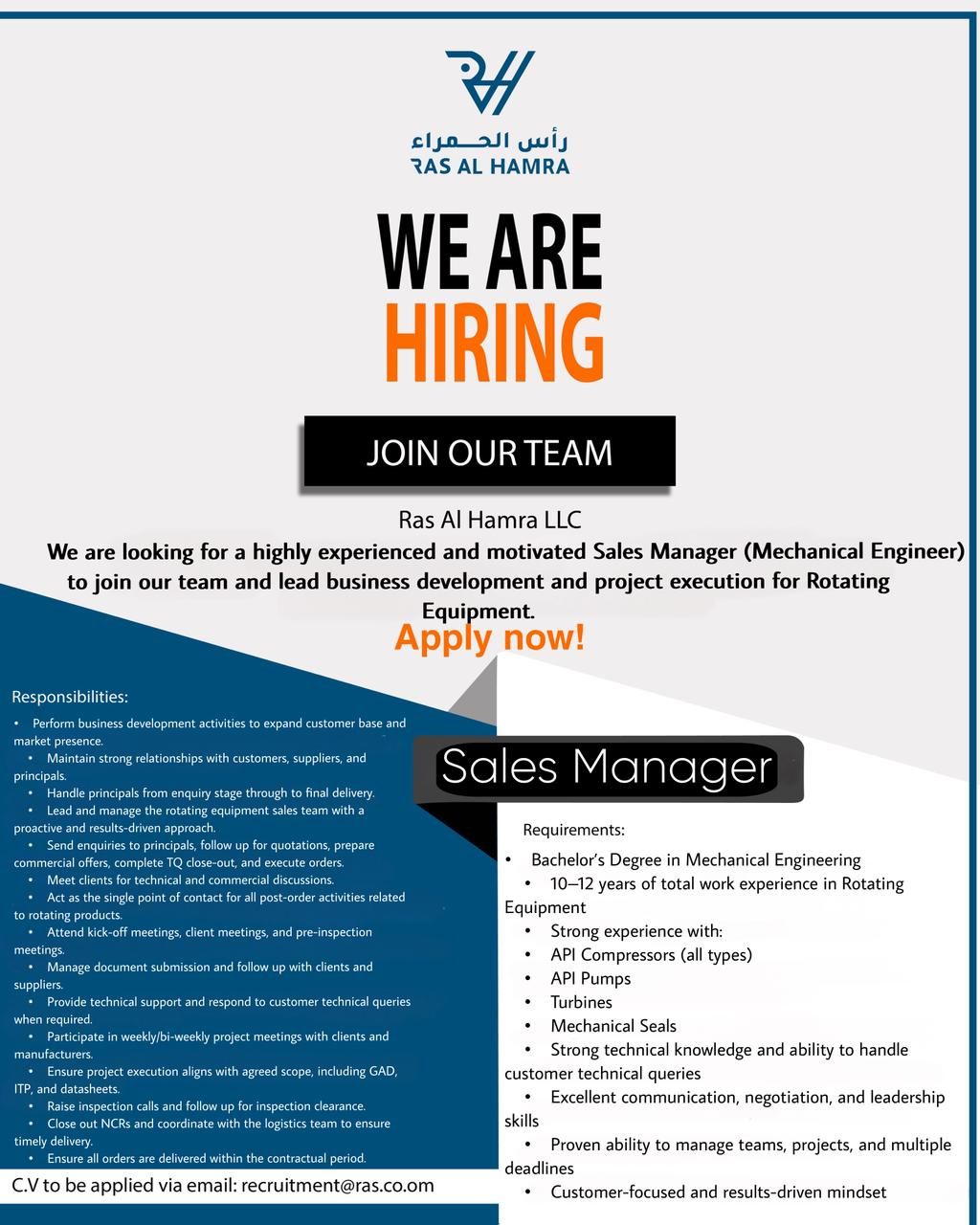 شركة راس الحمراء - وظيفة شاغرة ( Sales Manager )