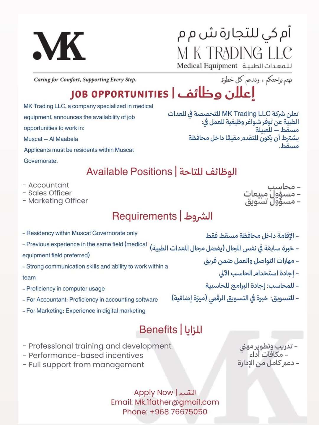 شركة أي كي للمعدات الطبية - وظائف شاغرة