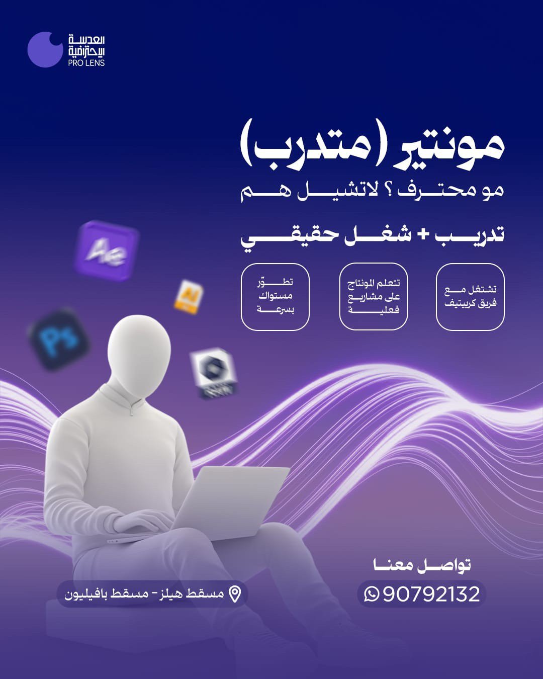 شركة العدسة الاحترافية في مسقط - توفر فرصة تدريب وتوظيف ( مصمم + مونتير )