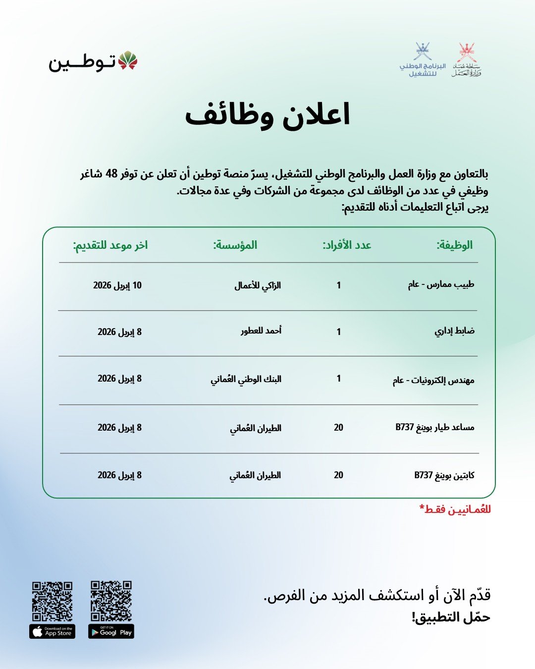 منصة توطين - توفر 48 وظيفة شاغرة لدى مجموعة من الشركات وفي عدة مجالات