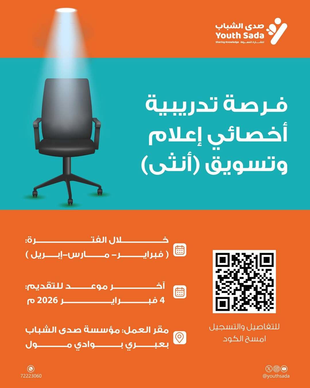 صدى الشباب في ولاية عبري - فرصة تدريبية ( أخصائية إعلام وتسويق )