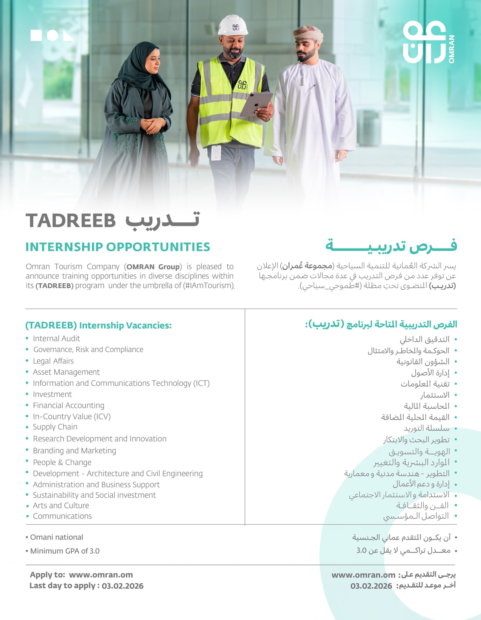 جهاز الاستثمار العُماني - يعلن عن ( برنامج نمو ) للتدريب على رأس العمل في مختلف التخصصات