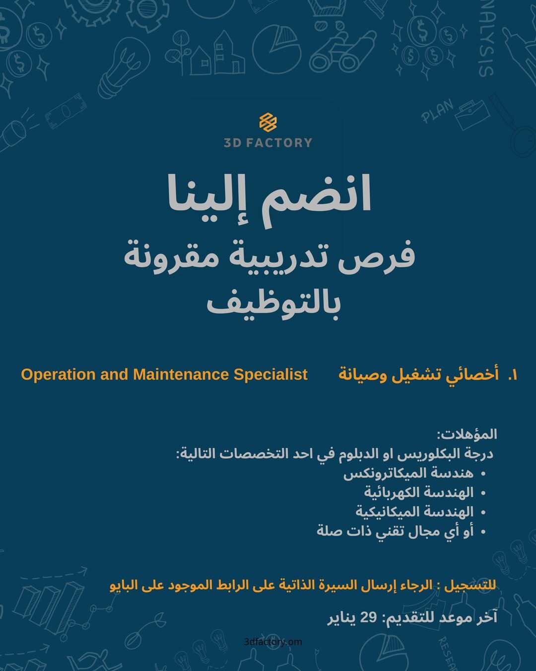 شركة ثري دي فاكتوري - فرص تدريبية مقرونة بالتوظيف ( أخصائي تشغيل وصيانة )