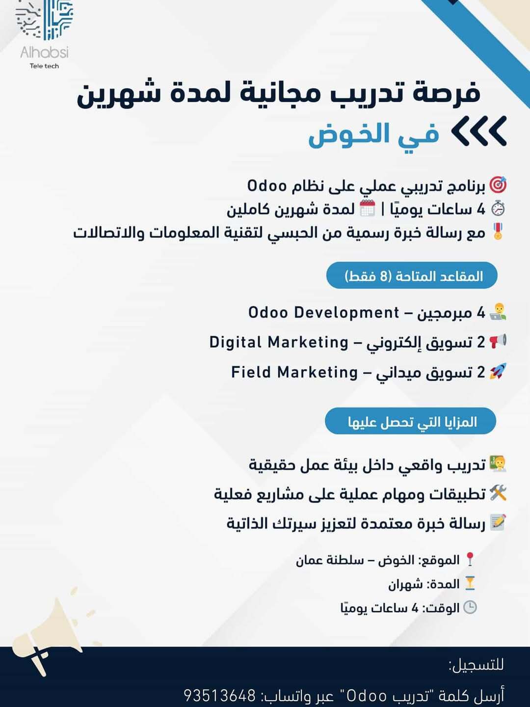 شركة الحبسي لتقنية المعلومات والاتصالات في الخوض - فرص تدريبية لمدة شهرين