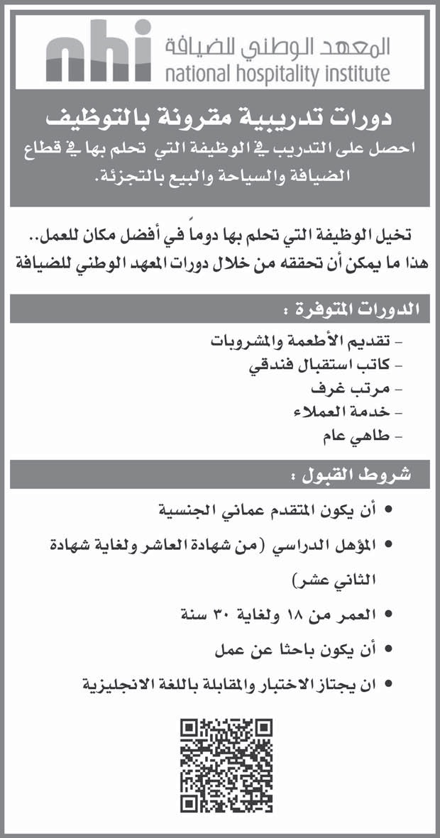 المعهد الوطني للضيافة - دورات تدريبية مقرونة بالتوظيف في قطاع الضيافة والسياحة والبيع بالتجزئة