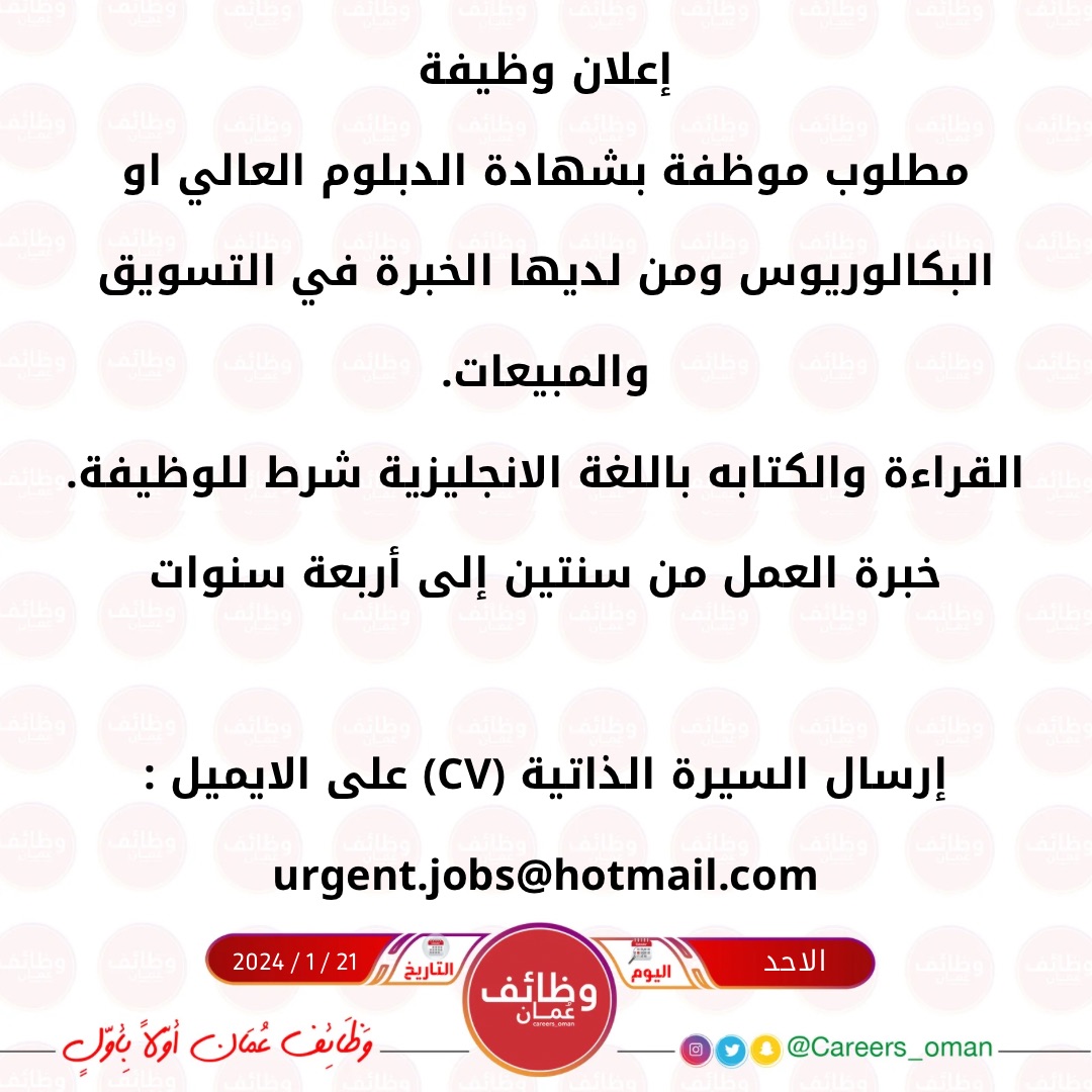 شركة رائدة في روي - وظيفة شاغرة ( موظفة التسويق والمبيعات )