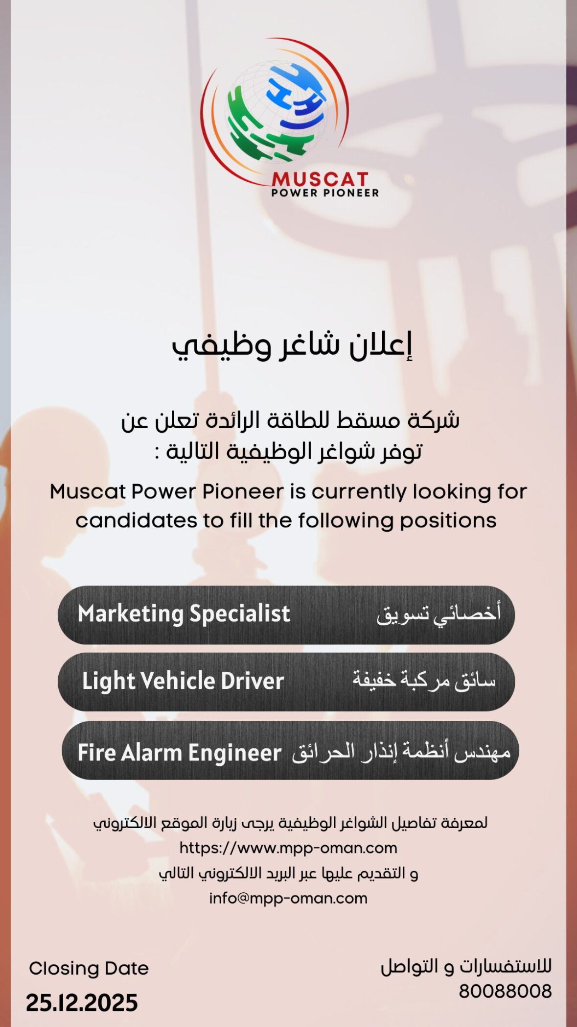 شركة مسقط للطاقة الرائدة - 3 وظائف شاغرة