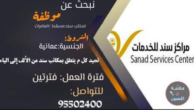 مكتب سند في العامرات - وظيفة شاغرة ( موظفة )