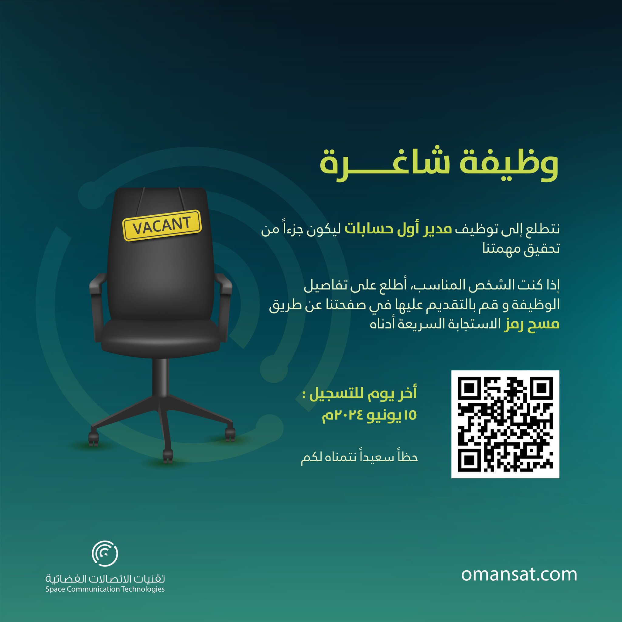 تقنيات الاتصالات الفضائية - وظيفة شاغرة ( مدير أول حسابات )