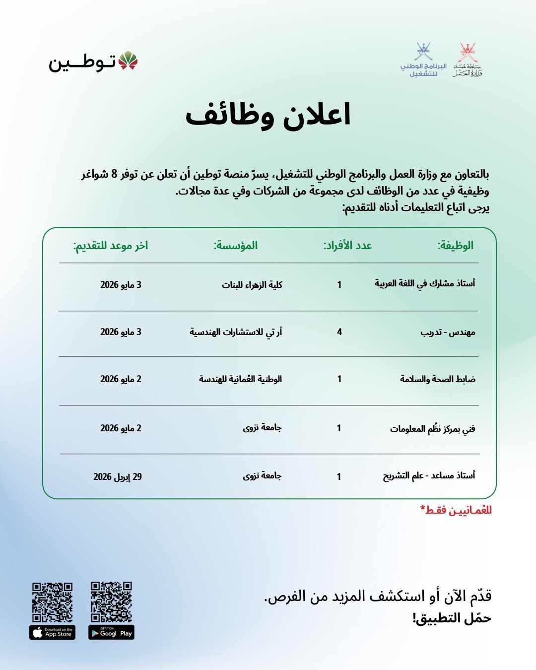 للتقديم، الرجاء زيارة صفحة الوظائف في موقعنا الالكتروني:
