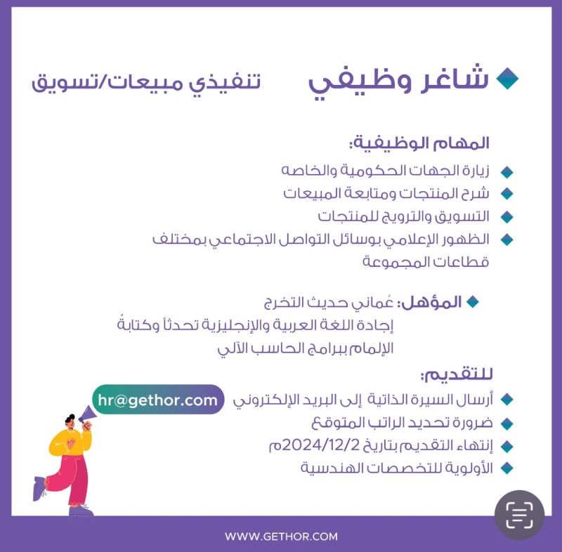 مجموعة جيثور - وظيفة شاغرة ( تنفيذي مبيعات / تسويق )