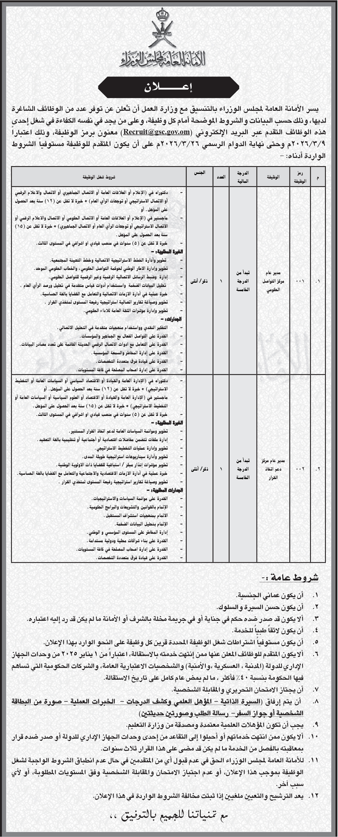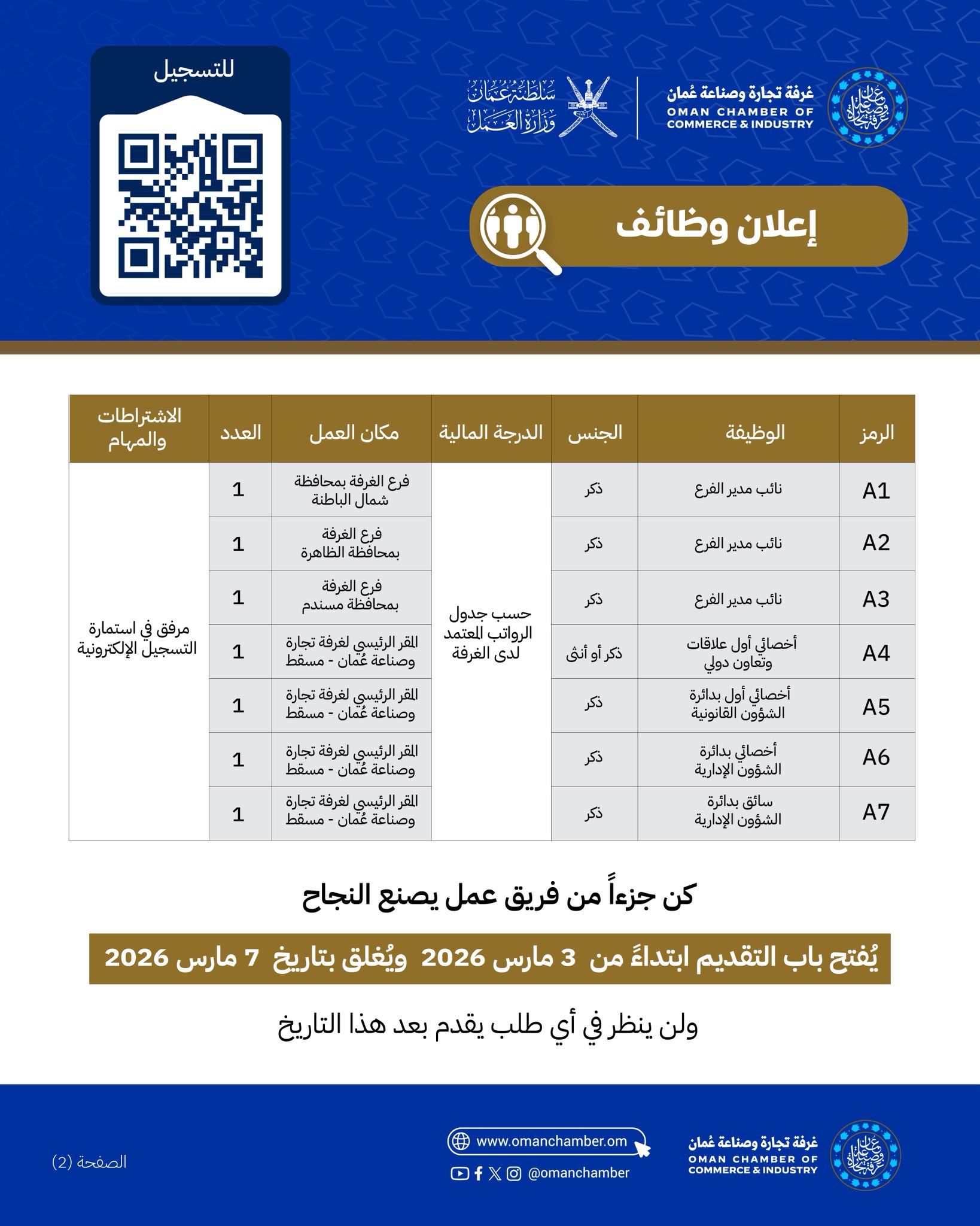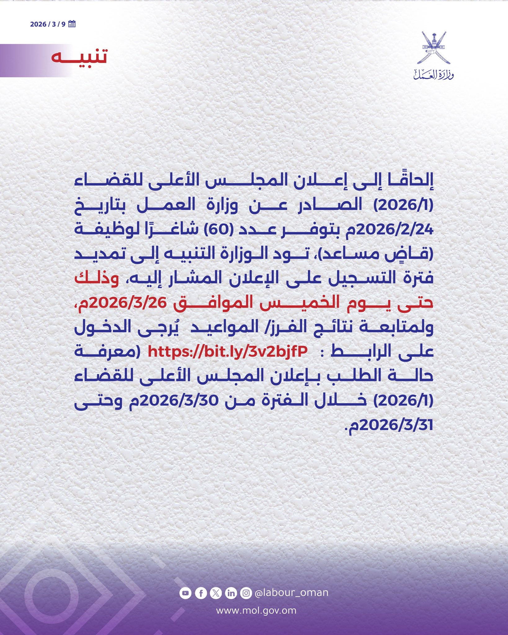 وزارة العمل - توفر عدد (1179) من الوظائف الشاغرة في عدد من الجهات الحكومية ( ملحق وظائف رقم 5 / 2024 ) 79 صفحة : http://https://www.m-oman0.net/vb/t28361.html