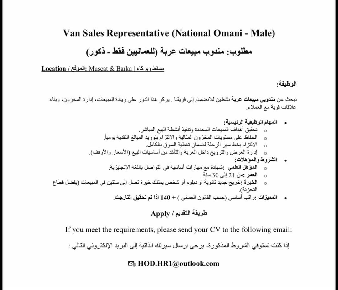 احدى الشركات الرائدة - وظيفة شاغرة ( مندوب مبيعات عربة )