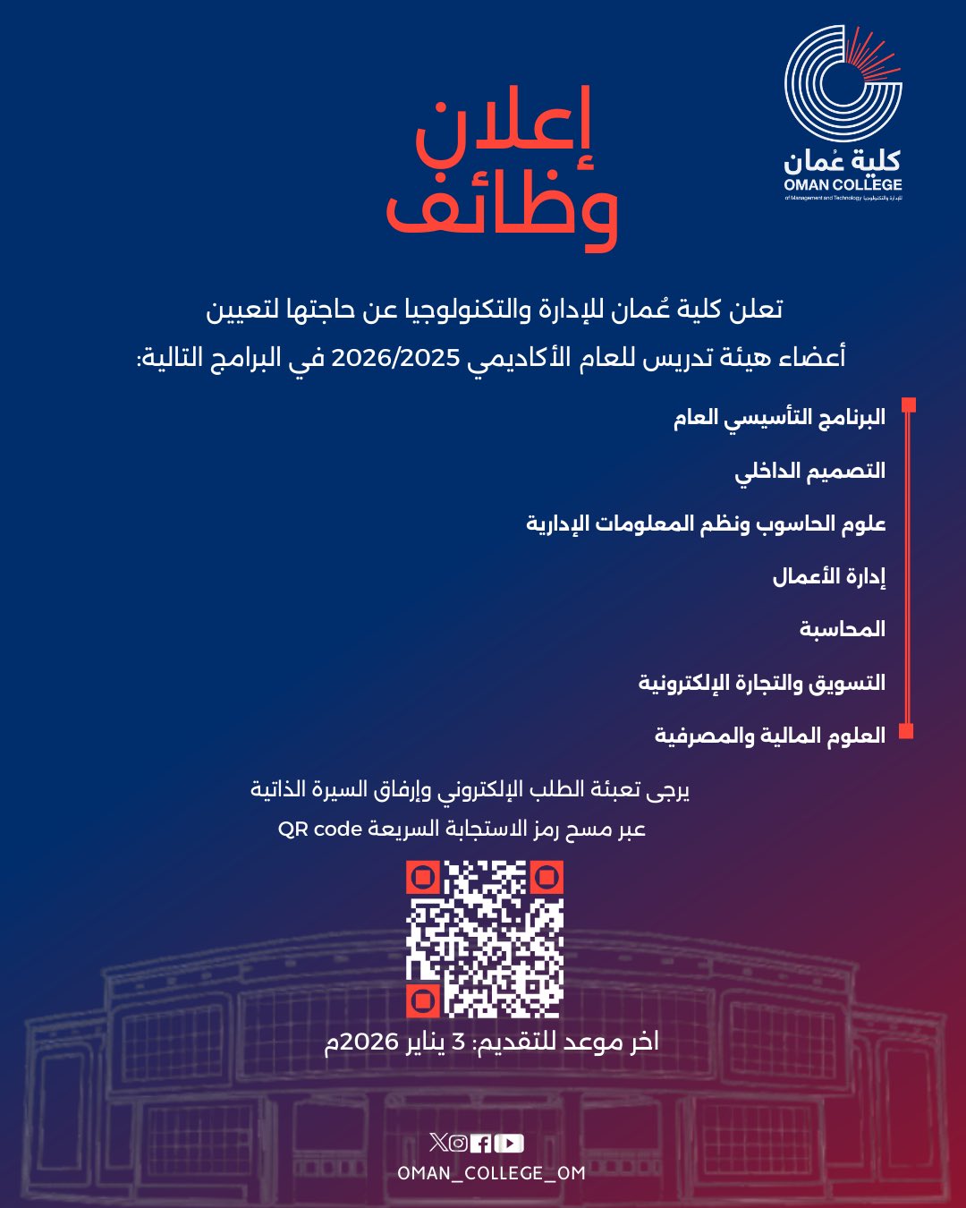 كلية عمان للإدارة والتكنولوجيا - وظائف تدريسية شاغرة