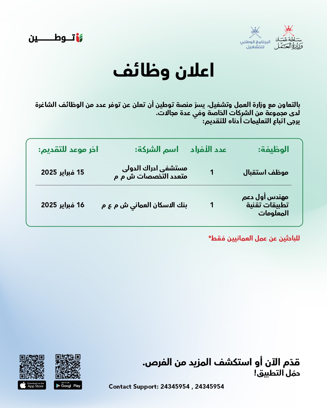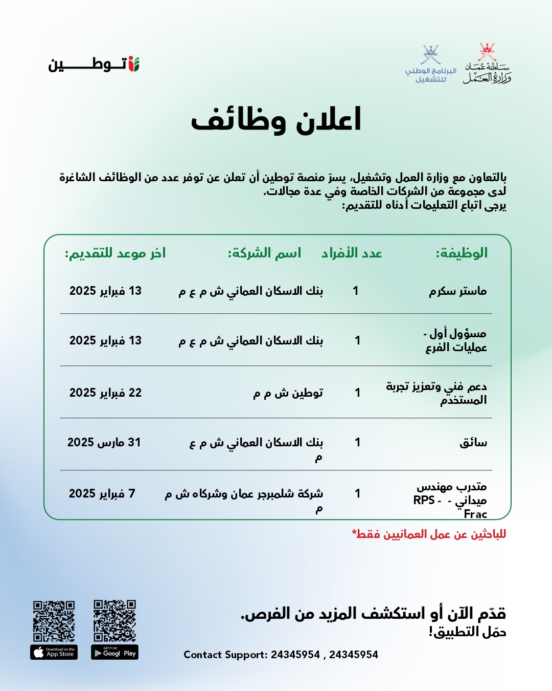 منصة توطين - 7 وظائف شاغرة لدى مجموعة من الشركات الخاصة وفي عدة مجالات