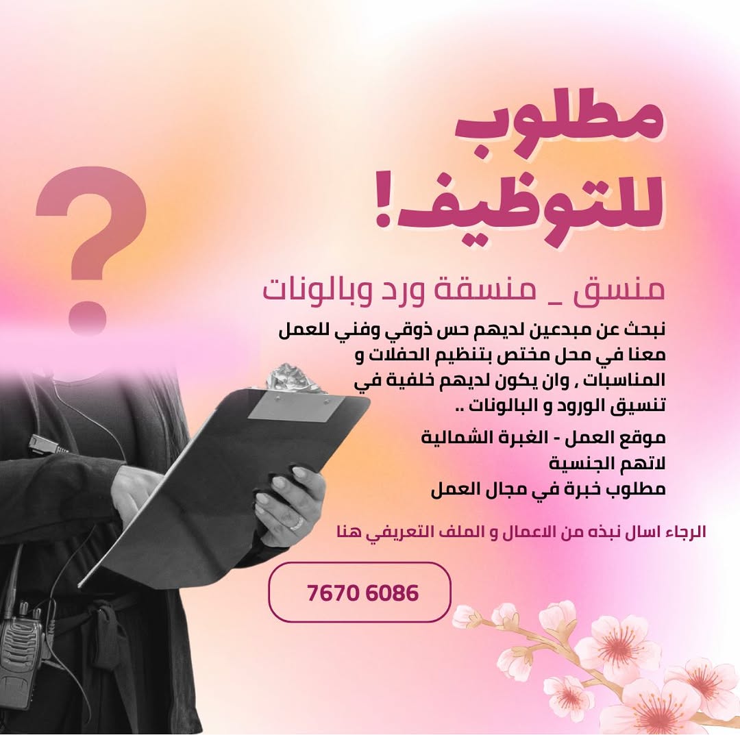شركة تنظيم فعاليات في مسقط - وظيفة شاغرة ( منسق/ة ورد وبالونات )