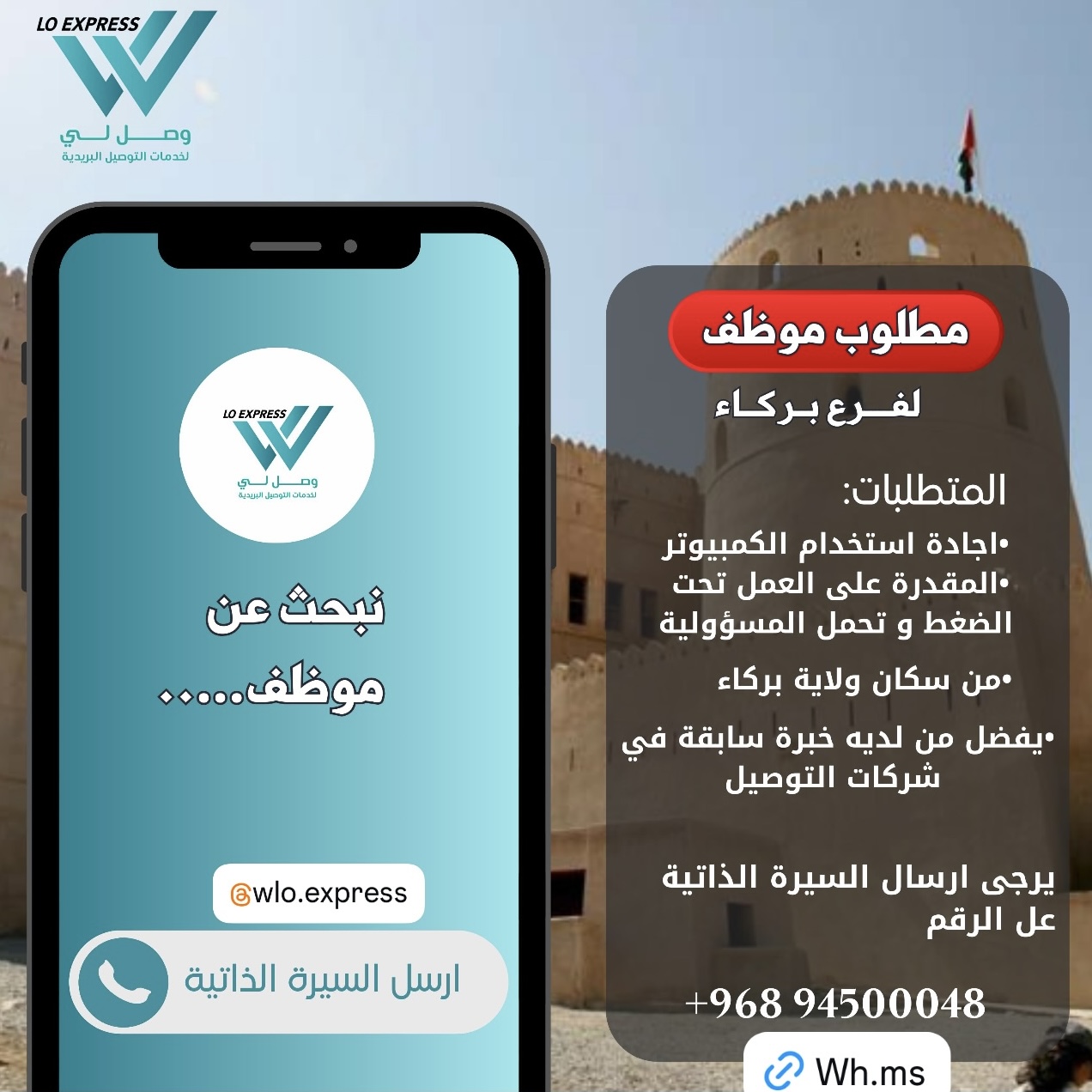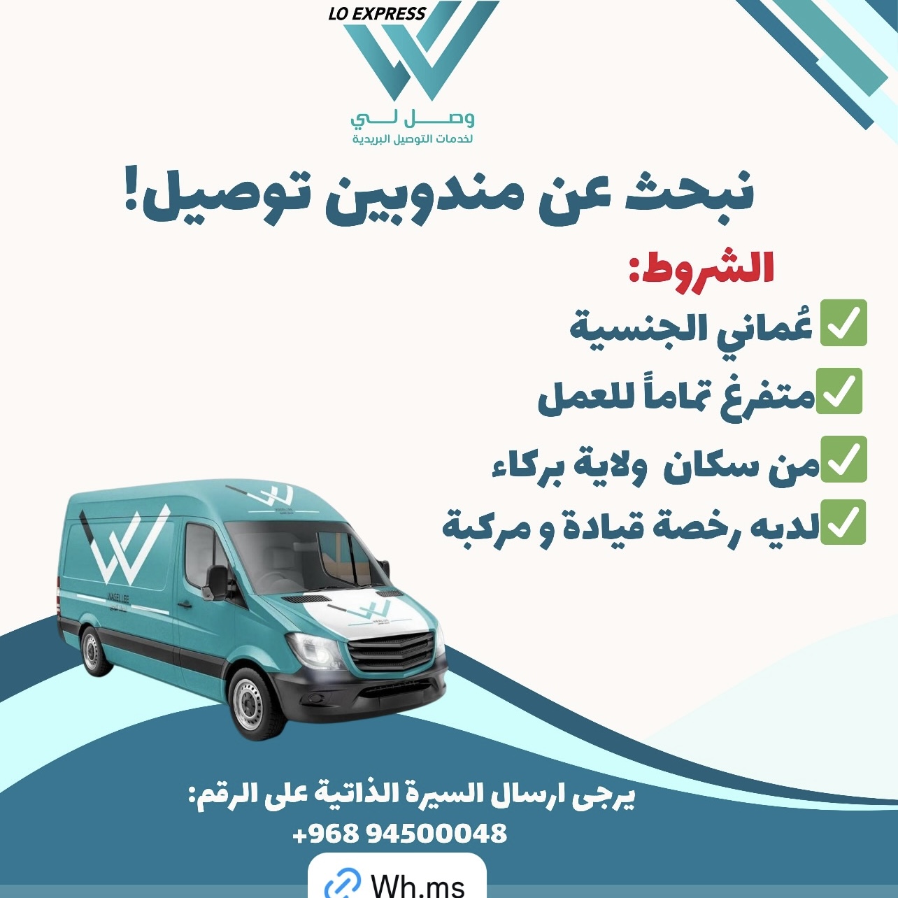 شركة وصل لي فرع بركاء - وظائف شاغرة ( مندوبين توصيل + موظف )