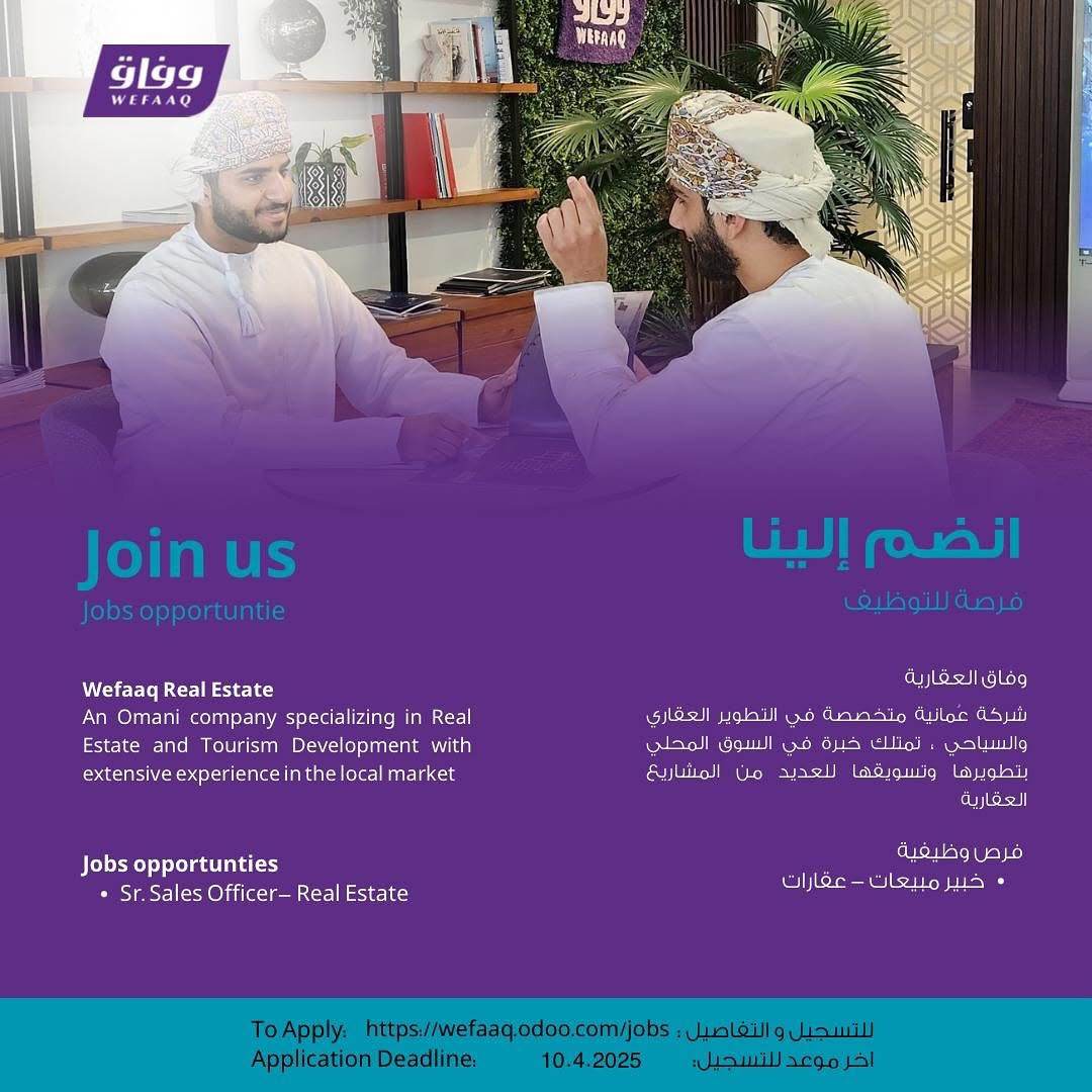 شركة وفاق العقارية - وظيفة شاغرة ( خبير مبيعات عقارات )