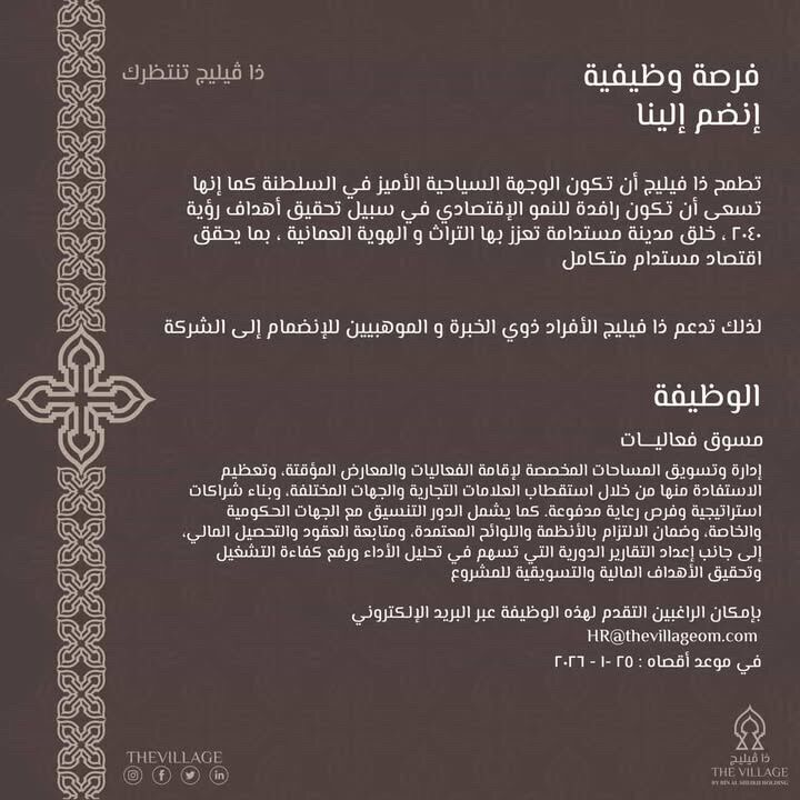 ذا فيليج - وظيفة شاغرة ( مسوق فعاليات )