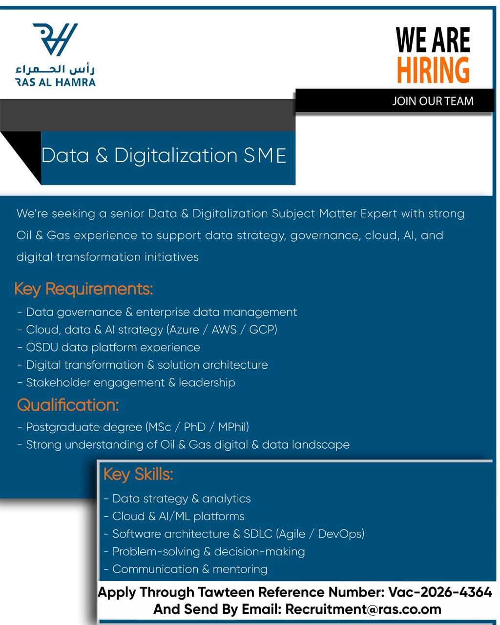مجموعة شركات رأس الحمراء - وظيفة شاغرة ( Data & Digitalization SME )