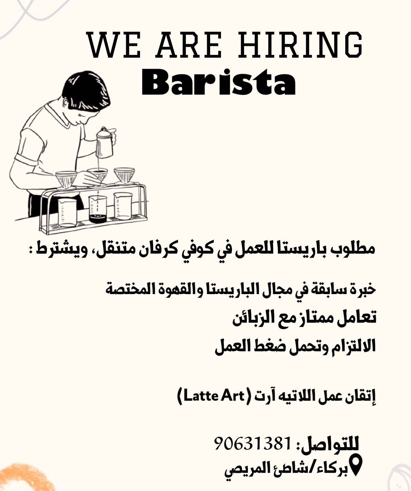 كوفي كرفان متنقل في بركاء - وظيفة شاغرة ( باريستا )