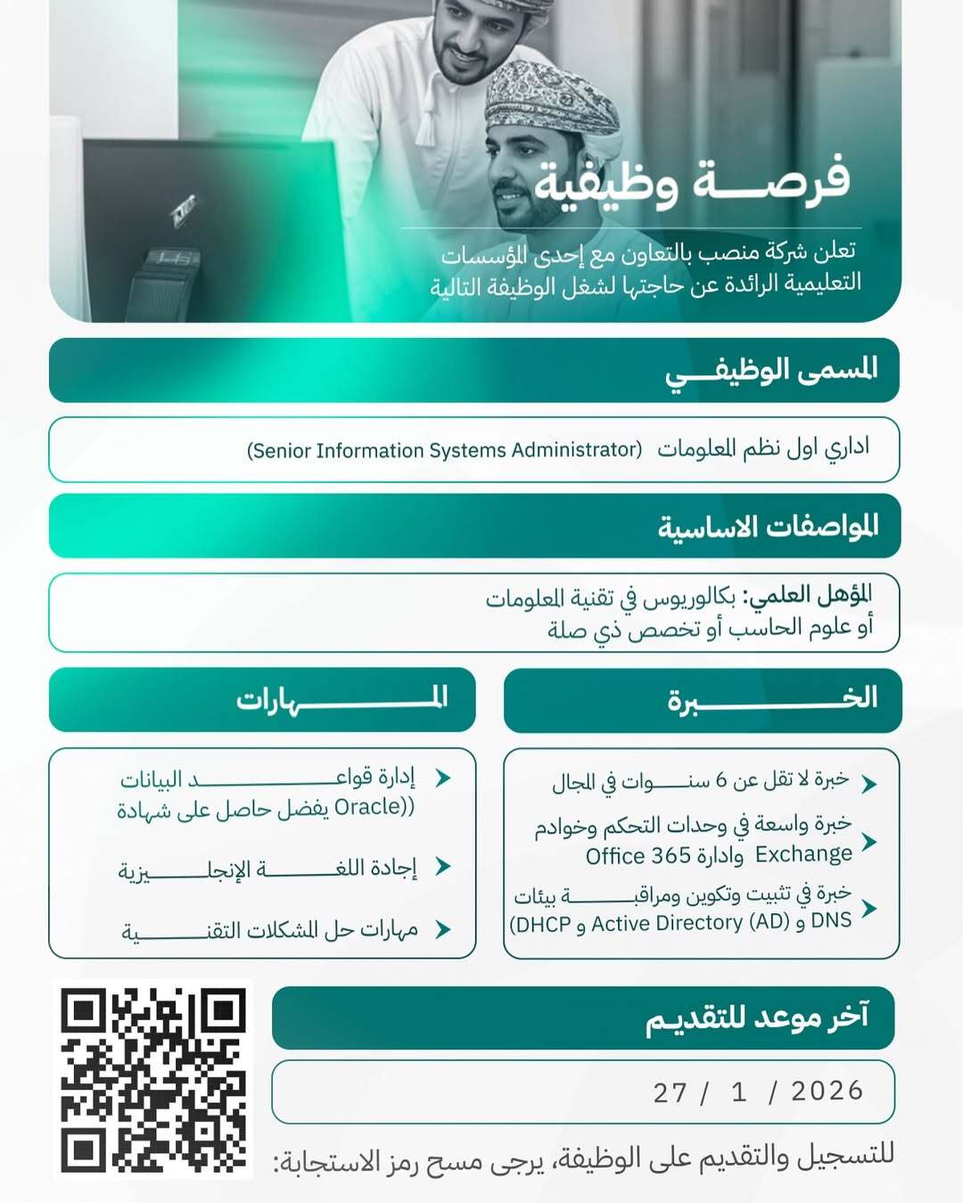 شركة منصب بالتعاون مع إحدى المؤسسات التعليمية الرائدة - فرص وظيفية ( اداري اول نظم المعلومات + رئيس قسم علاقات الموظفين