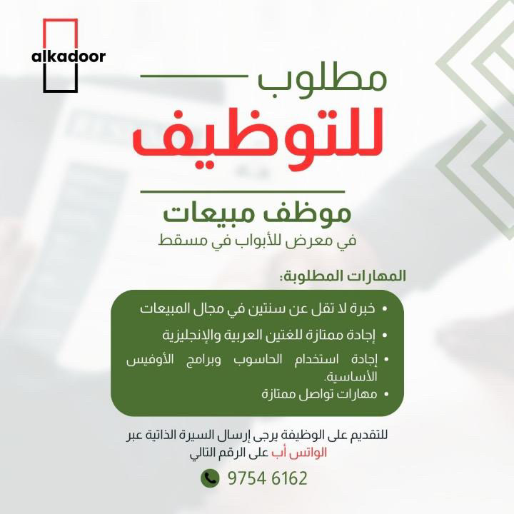 معرض للأبواب في مسقط - وظيفة شاغرة ( مبيعات )