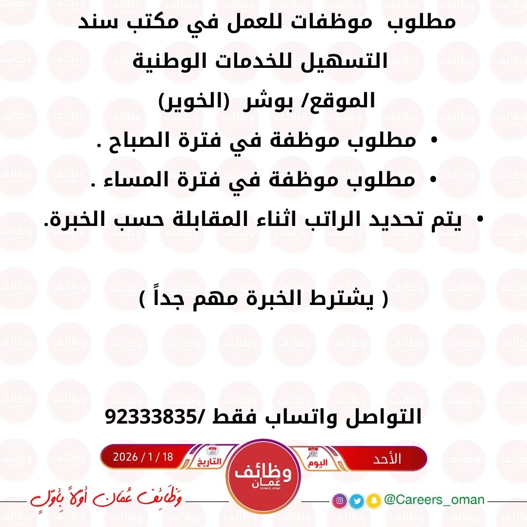 مكتب سند للخدمات في بوشر - وظيفة شاغرة ( موظفة )
