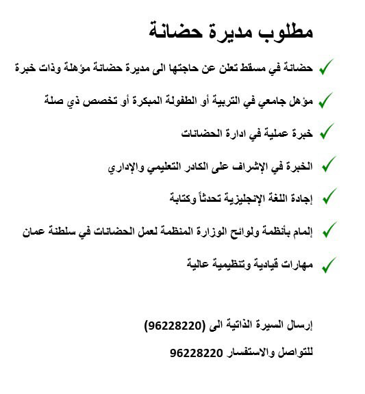 حضانة في الموالح الشمالية - وظيفة شاغرة ( مديرة حضانة )