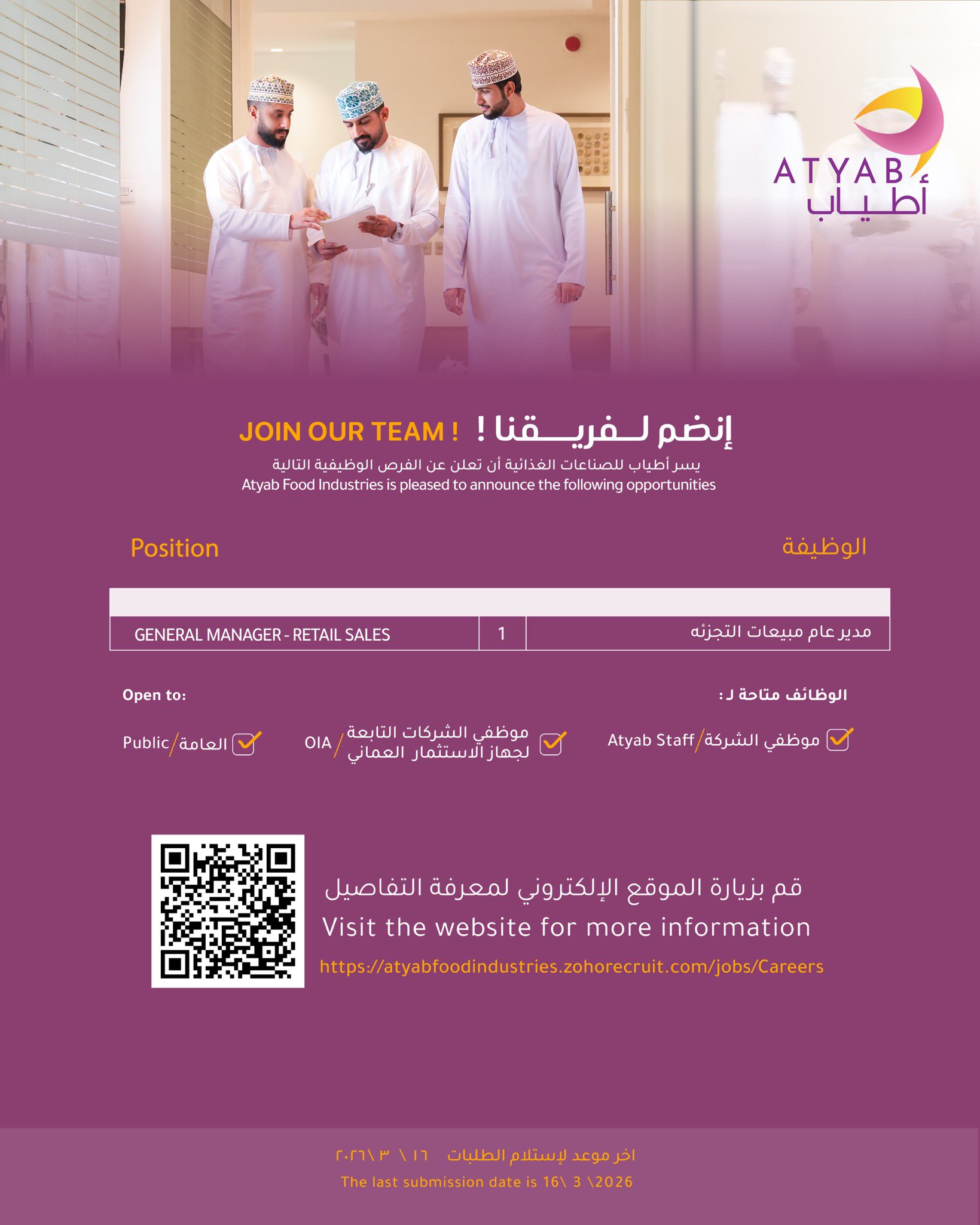 شركة أطياب للصناعات الغذائية - وظيفة شاغرة ( مدير عام مبيعات التجزئه )