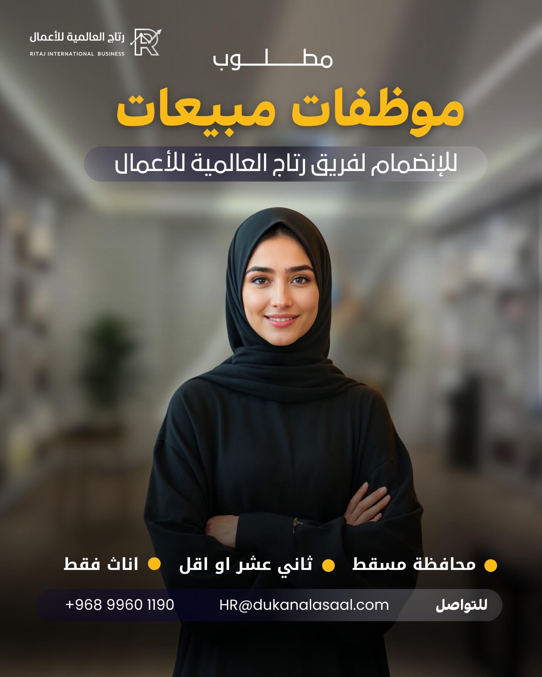 رتاج العالمية للأعمال في مسقط - وظيفة شاغرة ( موظفة مبيعات )