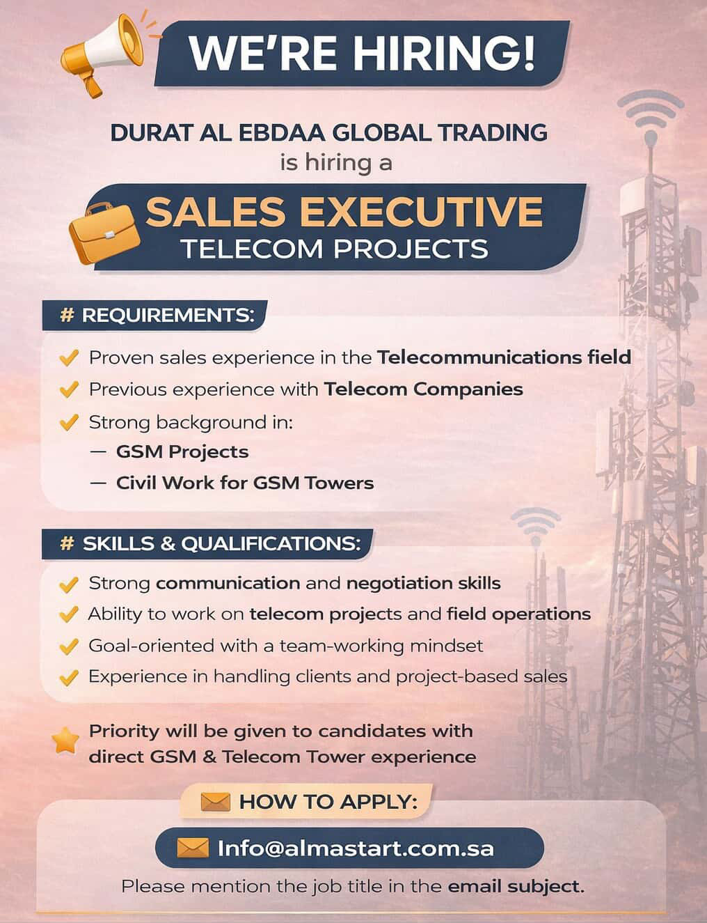 شركة درة الابداع للتجارة الدولية في المعبيلة - وظيفة شاغرة ( SALES EXECUTIVE )