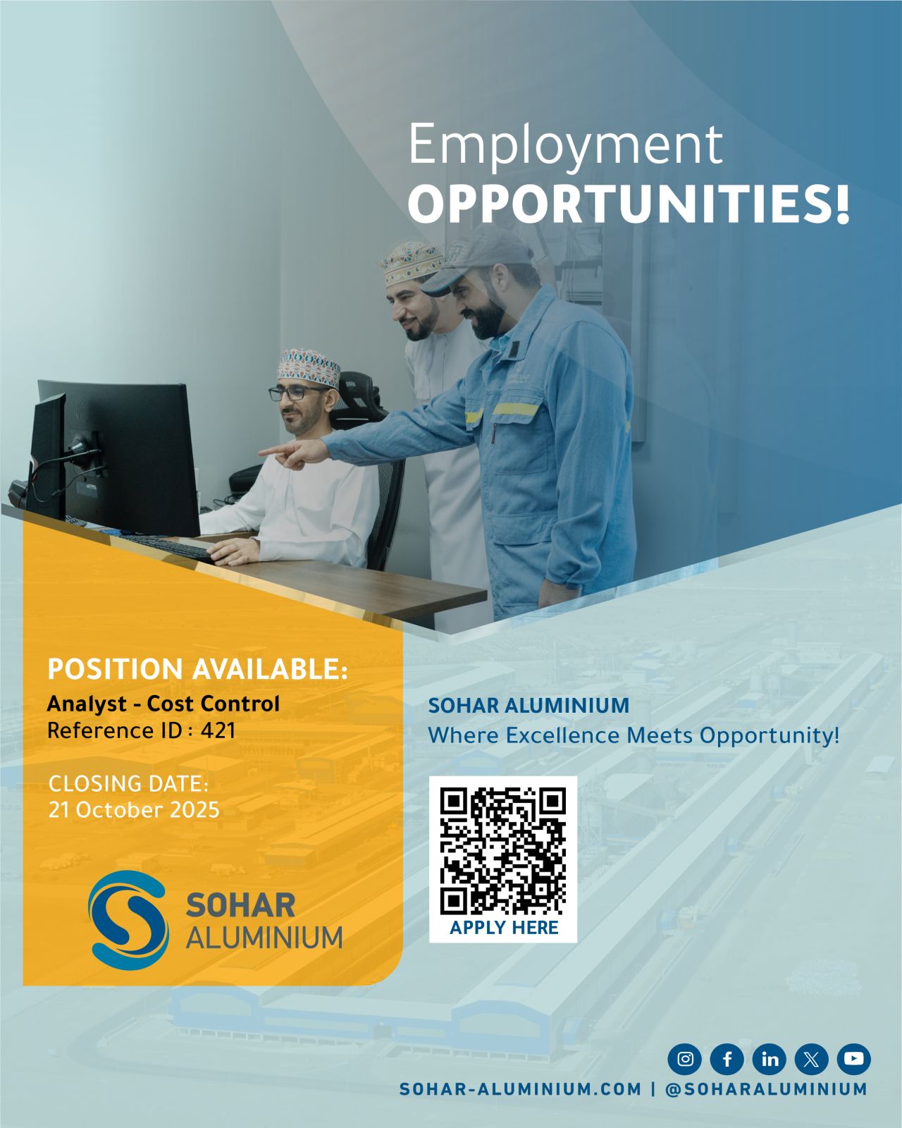 شركة صحار للألمنيوم - وظيفة شاغرة ( Analyst - Cost Control )