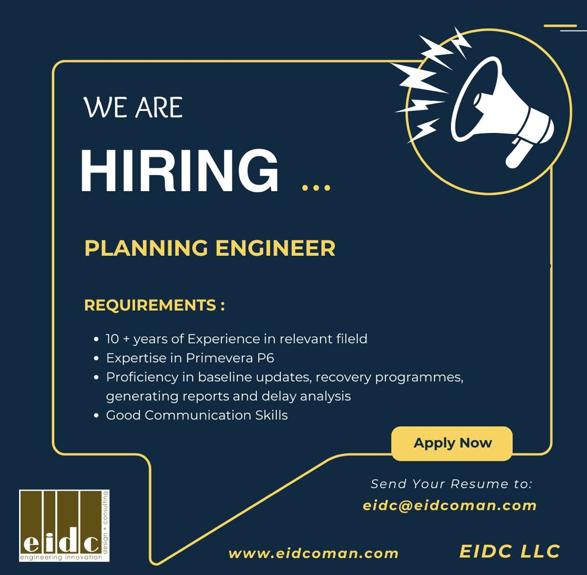 شركة EIDC في مسقط - وظيفة شاغرة ( PLANNING ENGINEER )