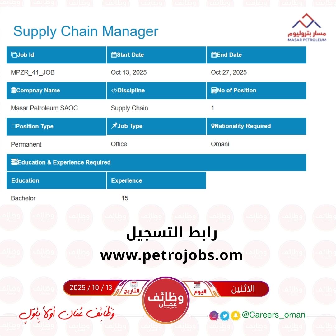 شركة مسار بتروليوم - وظيفة شاغرة ( Supply Chain Manager )