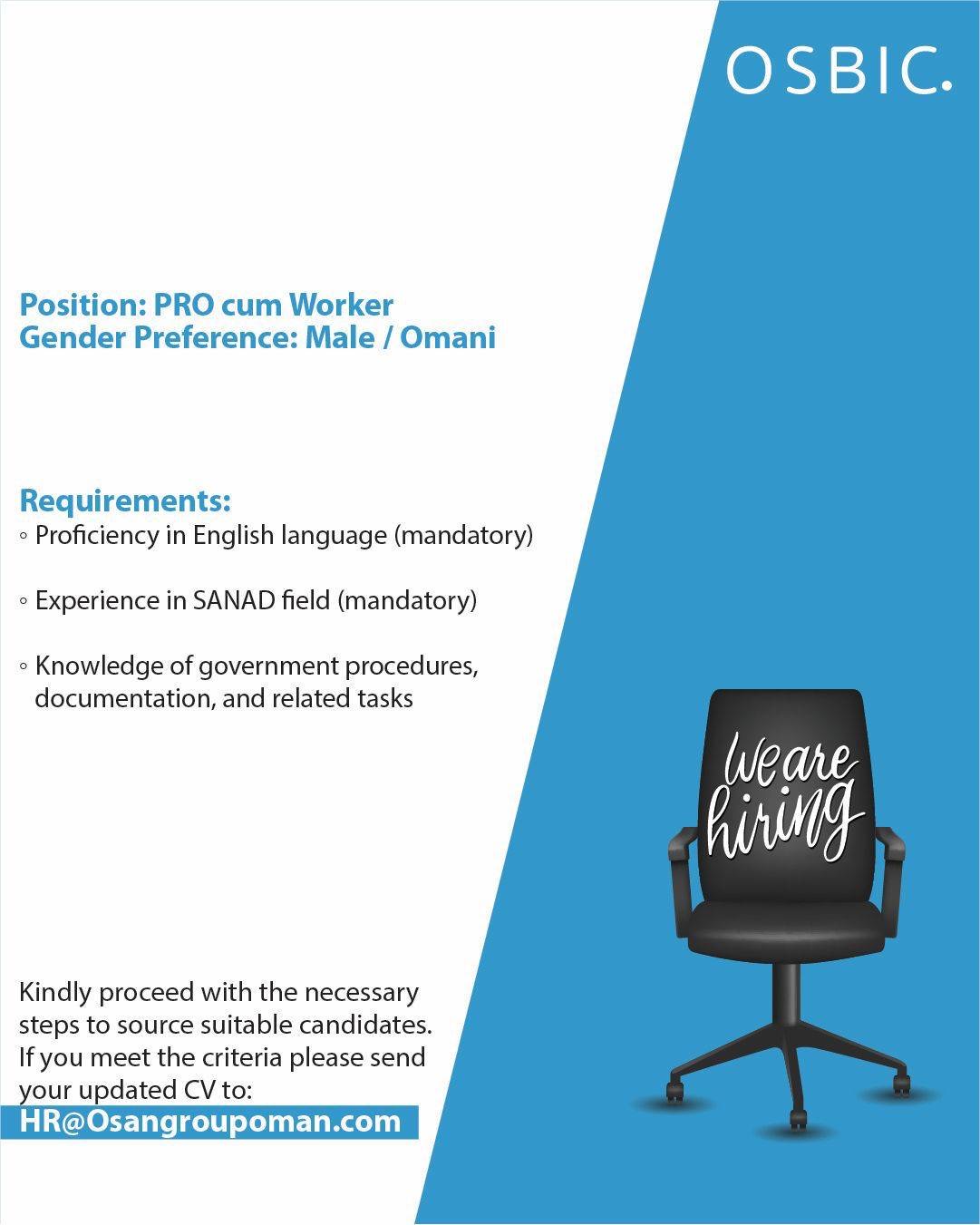 شركة أوسبك في مسقط - وظيفة شاغرة ( PRO cum Worker )