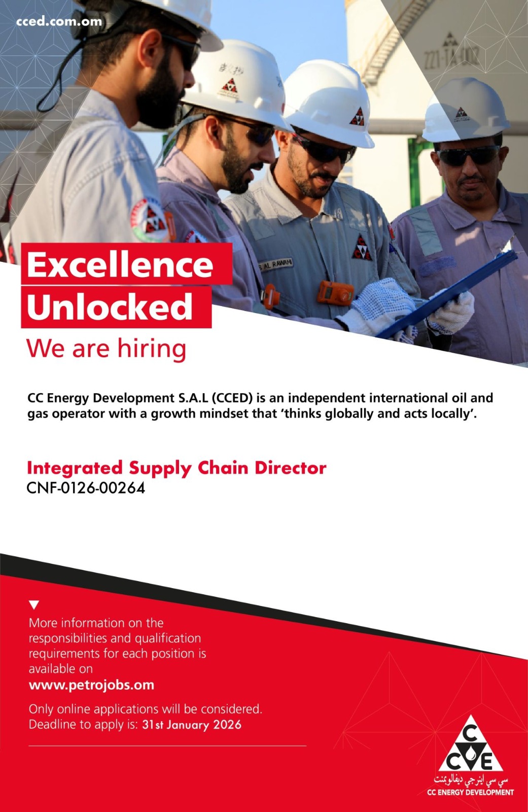 شركة سي سي إينرجي ديفلوبمنت - وظيفة شاغرة ( Integrated Supply Chain Director )