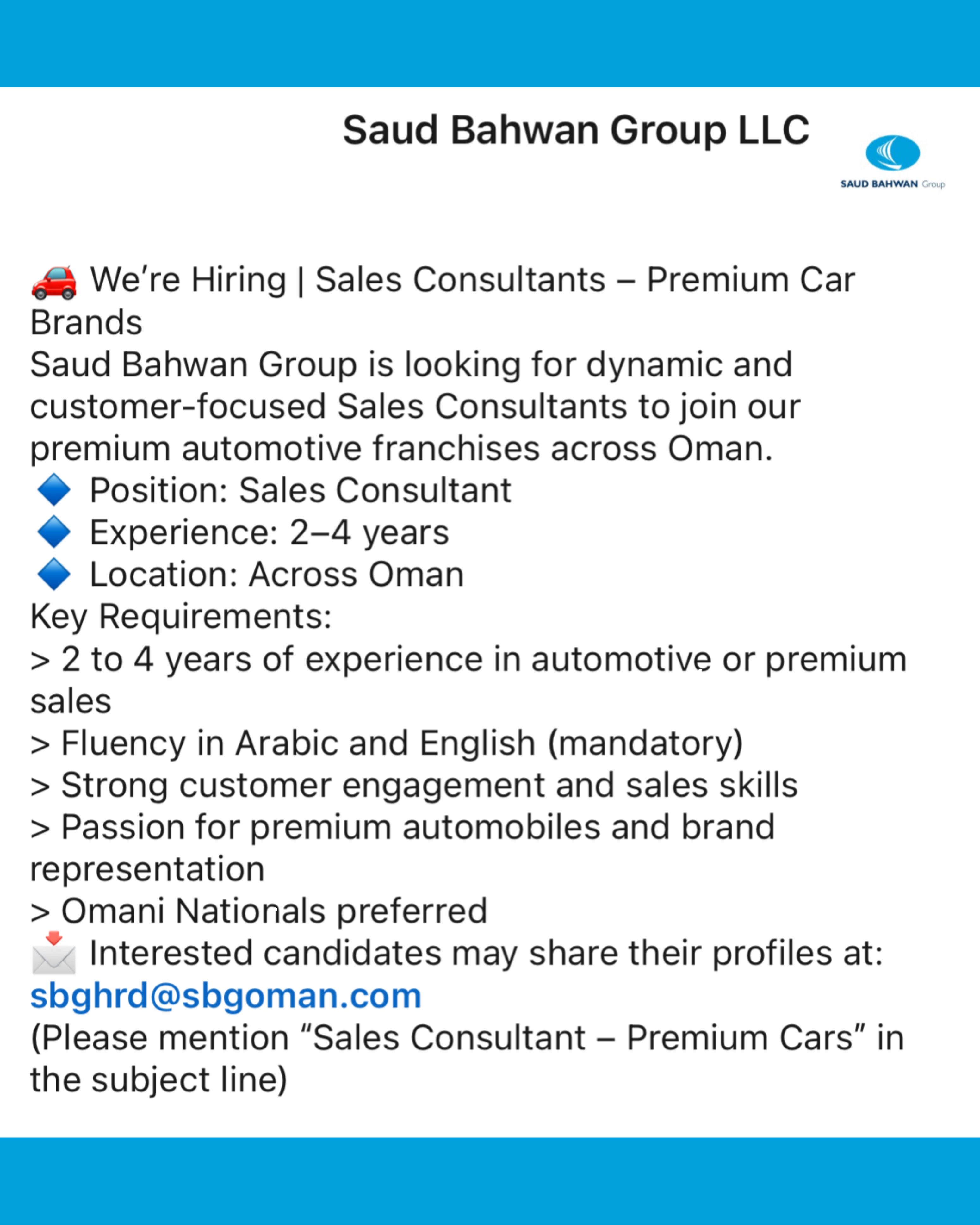 مجموعة سعود بهوان - وظيفة شاغرة ( Sales Consultant )