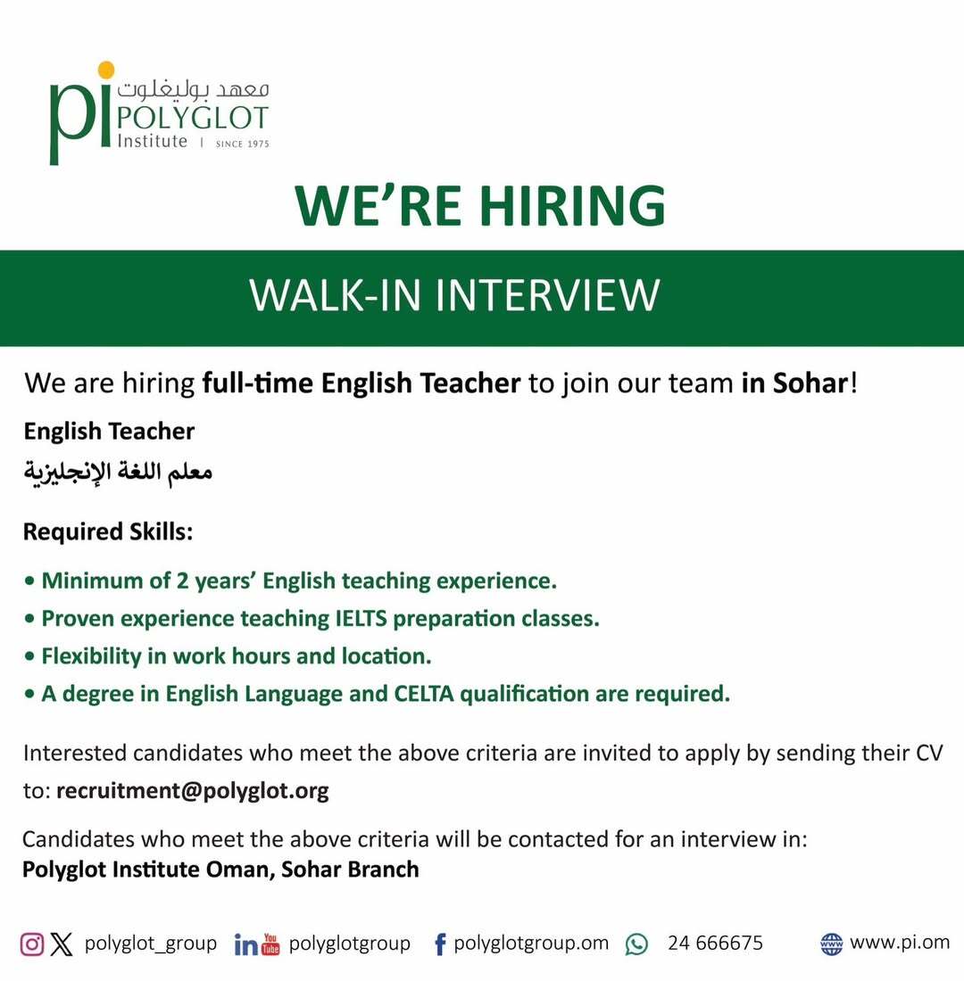 معهد بوليغلوت - وظيفة شاغرة ( معلم اللغة الإنجليزية )