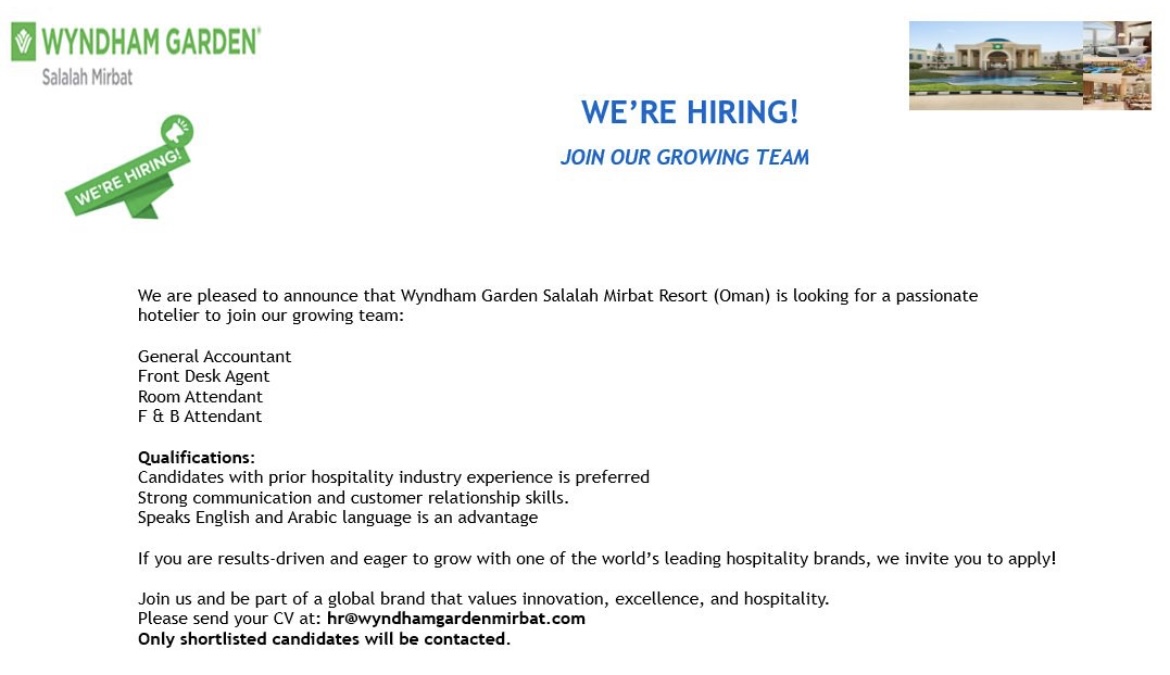 منتجع ويندهام جراند صلالة - وظائف شاغرة