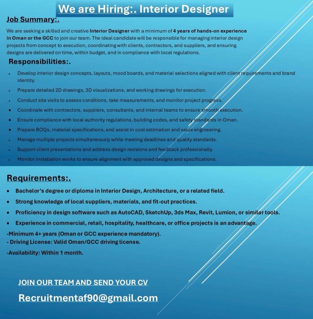 شركة تصميم في مسقط - وظيفة شاغرة ( مصمم داخلي )