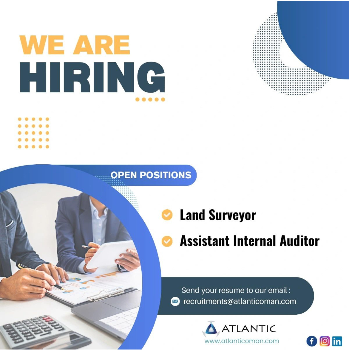 شركة الأطلسي للإنشاءات - وظائف شاغرة ( Land Surveyor / Assistant Internal Auditor )