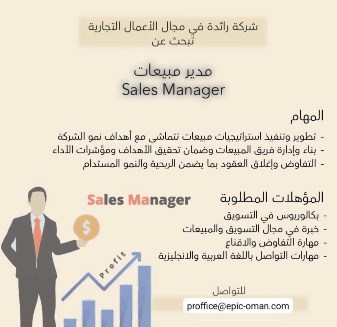 شركة رائدة في مجال الأعمال التجارية - وظيفة شاغرة ( مدير مبيعات )
