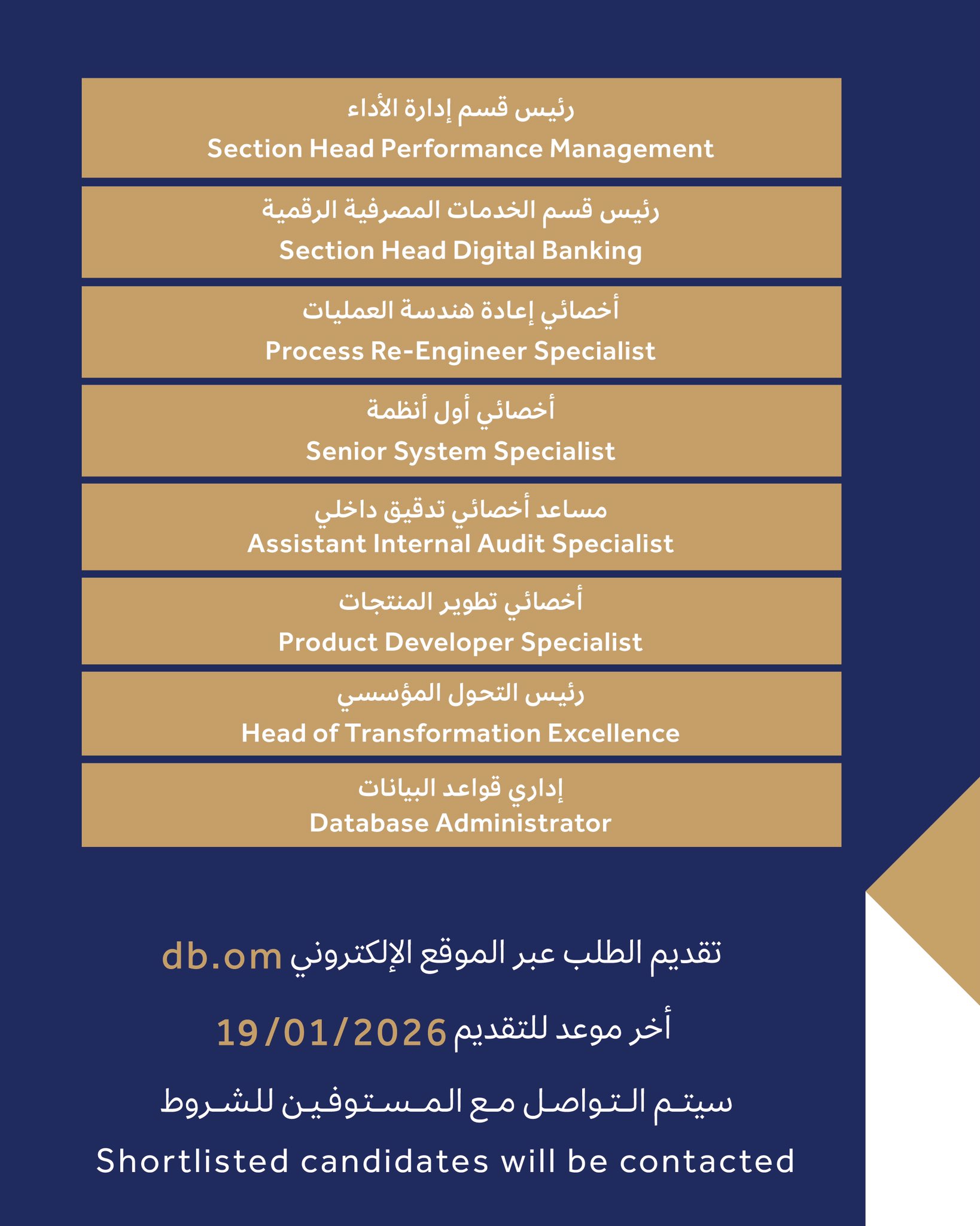 وزارة العمل بالتنسيق مع وزارة المالية وجهاز الضرائب وكلية الدراسات المصرفية والمالية - توفر 20 الفرص التدريبية مقرونة بالتشغيل وذلك ضمن مبادرة (جسر)