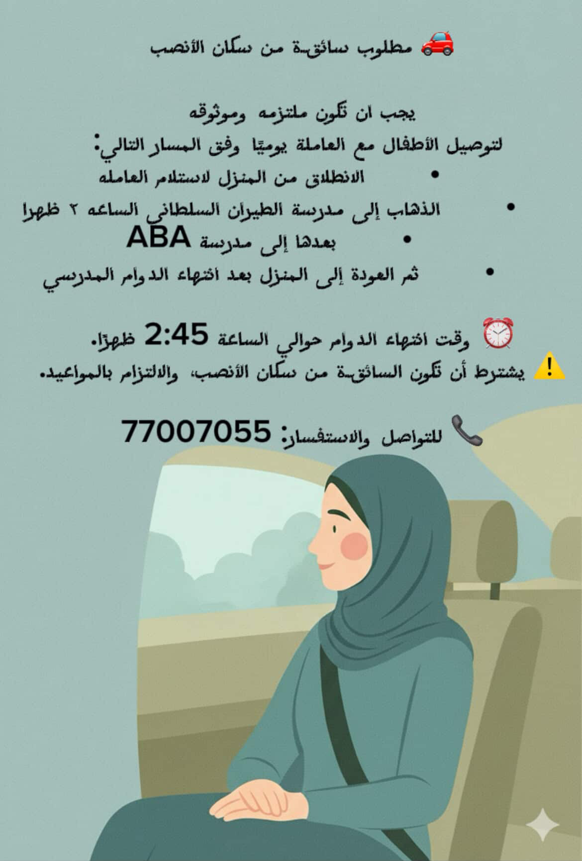 شركة ناشئة في مسقط - فرصة شاغرة ( سائقة )