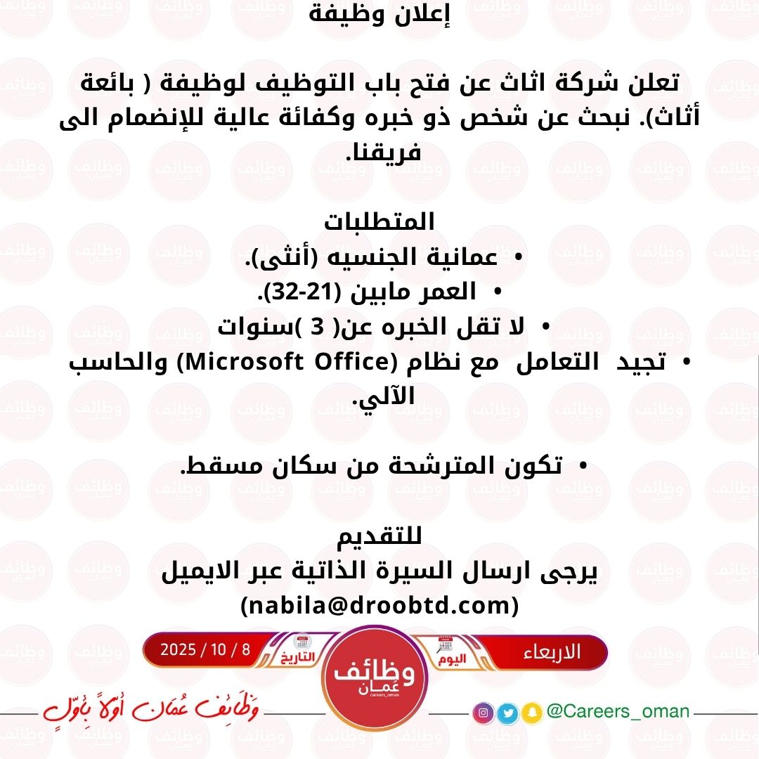 شركة اثاث في مسقط - وظائف شاغرة ( سائق شاحنة ثقيلة + بائعة أثاث )